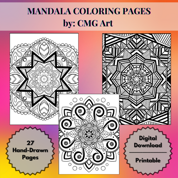Hand-Drawn Mandala Coloring Pages (Digital Download in PDF File)