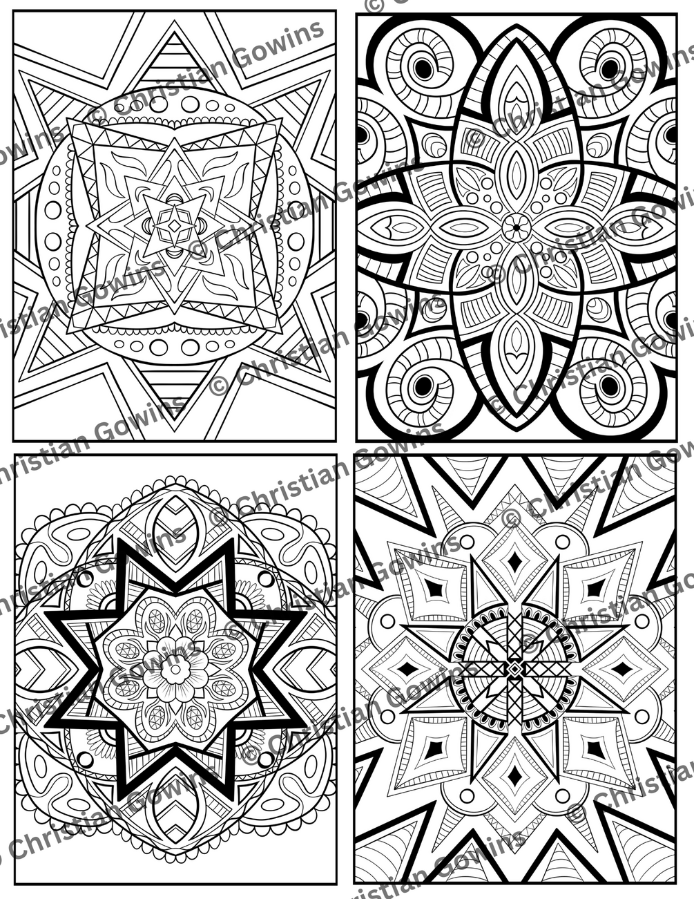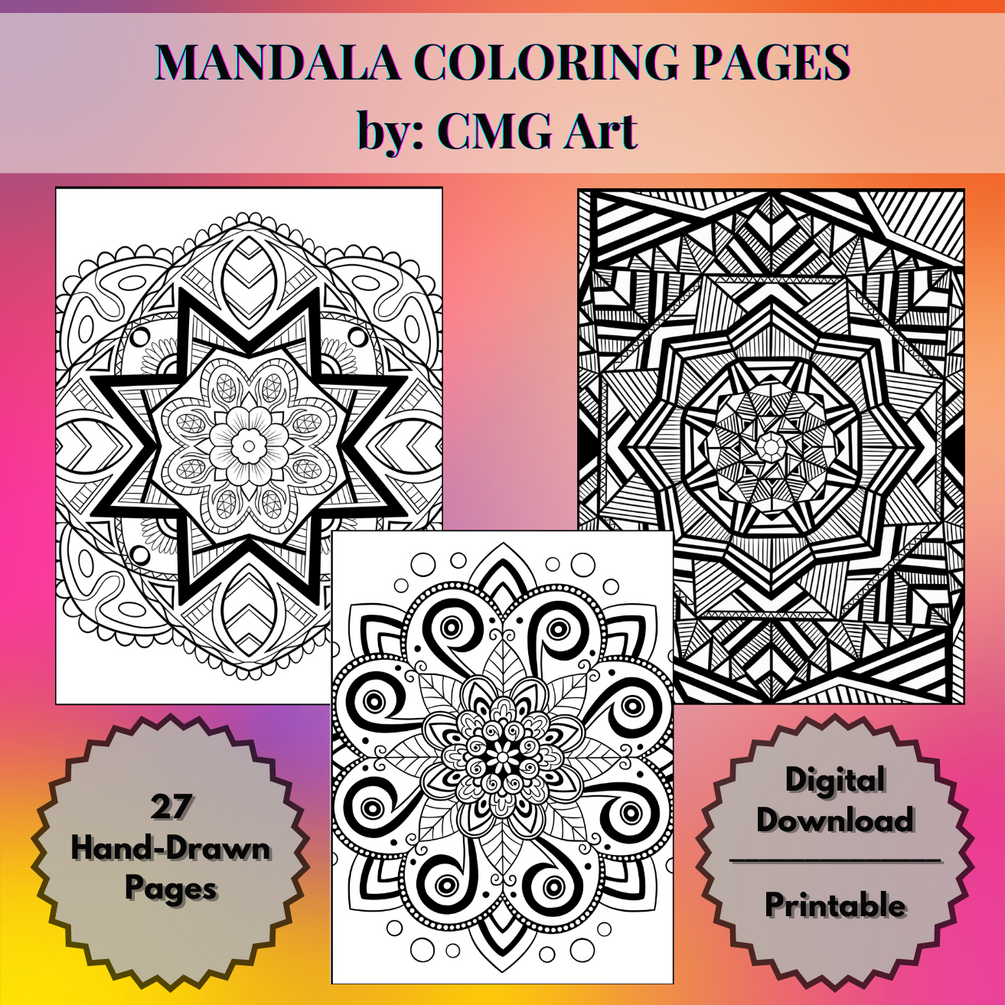 You'll get 27 unique, ready-to-print mandala coloring book pages in a single PDF