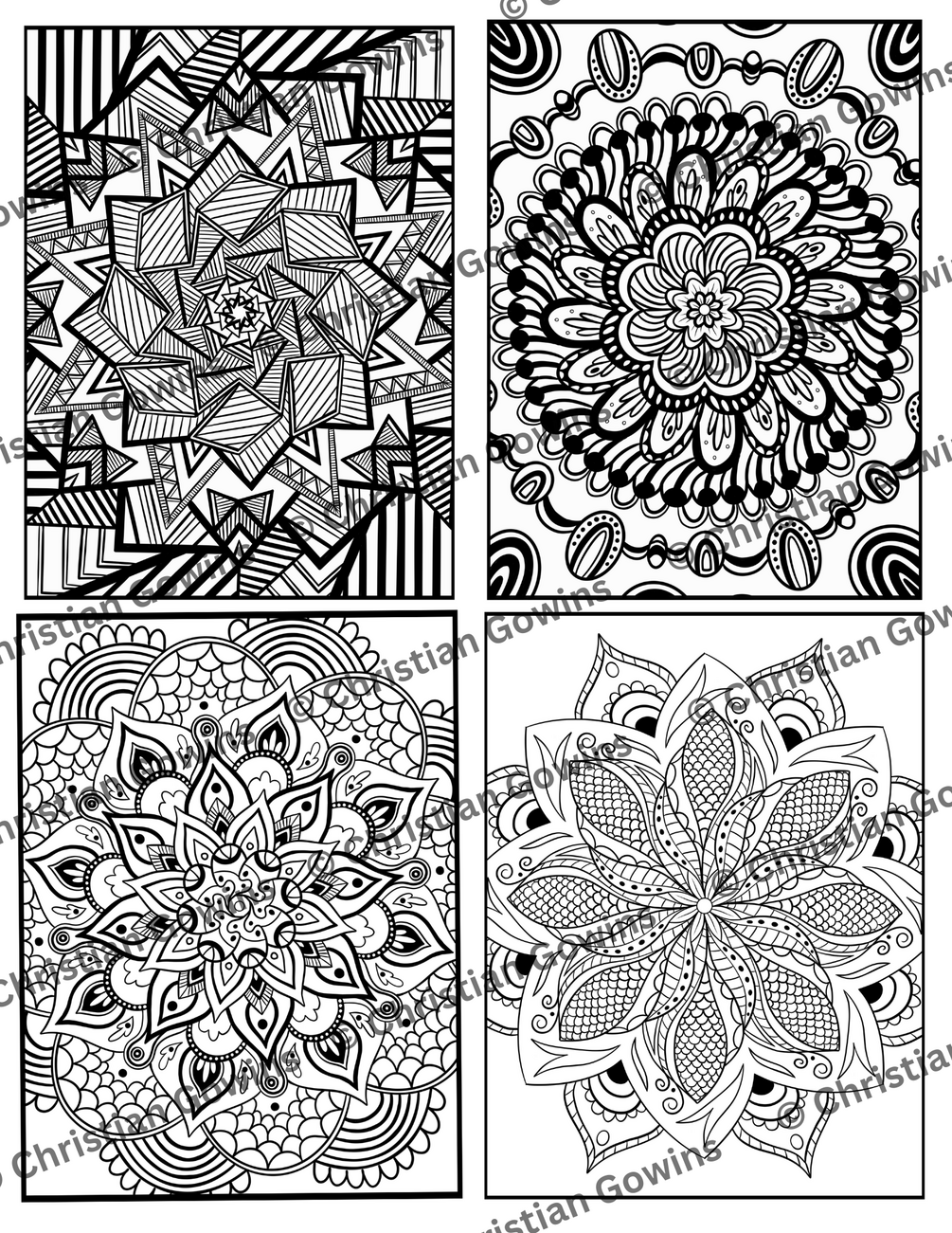 Hand-Drawn Mandala Coloring Pages (Digital Download in PDF File)